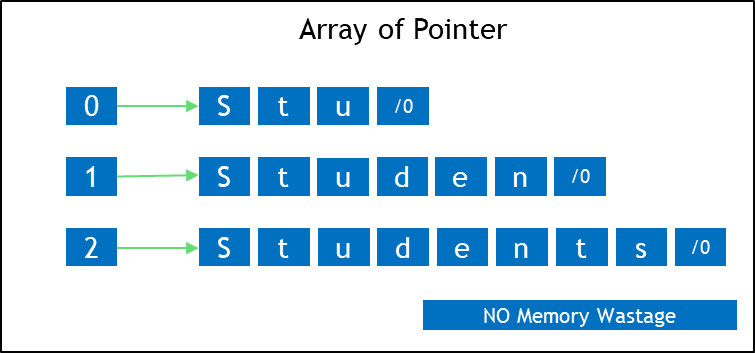 इसलिए, अपने program में high space की consumption से बचने के लिए हम C में Pointers की एक Array का उपयोग कर सकते हैं। Array